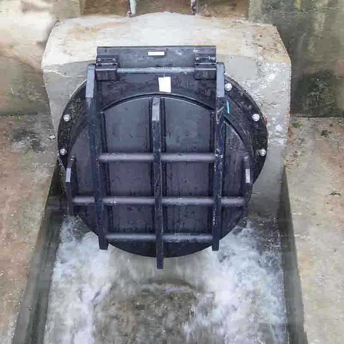拍门是安装在江河边排水管出口的一种单向阀,当江河潮位高于出水管口,且压力大于管内压力时,拍门面板自动关闭。以防江河潮水倒灌进排水管道内,防止汛情发生,对人身财产安全是一道重要保障!!!